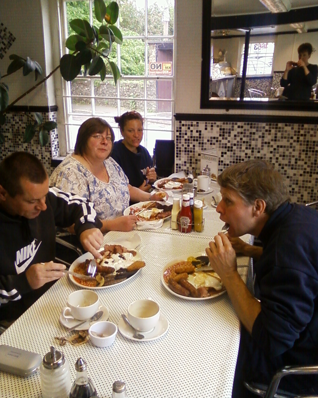 Actually, several Big Breakfasts to be correct. As you know, we like our nosh here at Ellie's Dairy and Saturday morning was no exception. We decided to have a team outing to Lenham chippie - an excellent establishment that provides the most wonderful (and enormous) cooked breakfasts. And here we all are: